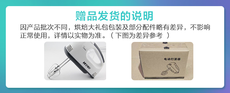 大きい贈り物の包みはとても良くて、ケーキのものをするのはすべて比較的にそろっていて、称、電動のたまご器、ビスケットの模型があって、パンの杯、卵のタルトの台。使いやすいし、操作も簡単です。サービス、態度もとても良くて、速達はとても速くて、三日間で入荷しました。宅配便もとてもいいです。全体として楽しい買い物ができました。